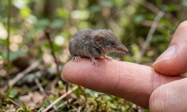 Etruscan shrew on the tip of a human finger — the smallest mammal on the planet. The smallest mammal on Earth — the Etruscan shrew — weighs about 1.8 grams...