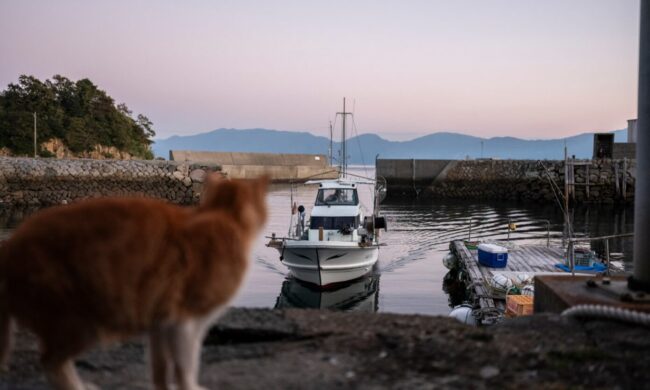 A ginger cat watches Mr. Hidenori Kamimoto return from fishing. Image source: theguardian.com On the Japanese island of Aoshima, about 80 cats and only a few elderly people live today....